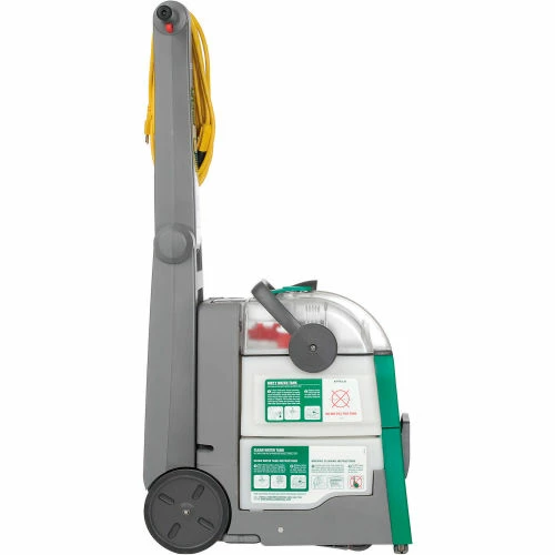 Bissell® Big Green Commercial Upright Deep Cleaners are made with a 10-1/2″ cleaning path width and a 1-3/4 gallon tank capacity. Bissell® carpet cleaner features two motors – one motor for suction power and one for the brush roll. Flow indicator provides an easy monitor for water and solution levels. Ergonomic carry handle. No assembly required. 25-foot extension cord included. 1 Year Limited Warranty.