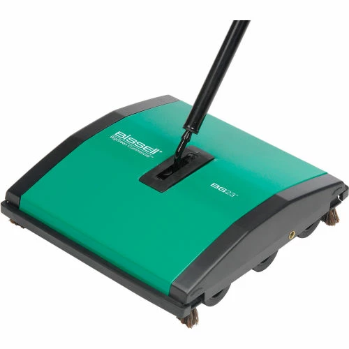 Bissell® BigGreen Commercial BG23â„¢ Manual Sweepers are lightweight, maneuverable cleaners ideal for cleaning low carpets and bare floors. BG23â„¢ sweepers are made with a durable threaded handle and soft rubber wheels that conform to a variety of floor surfaces. Sweepers feature a 7-1/2″ wide cleaning path with two nylon brush rolls and dual debris dustpans. 1-Year Limited Warranty.