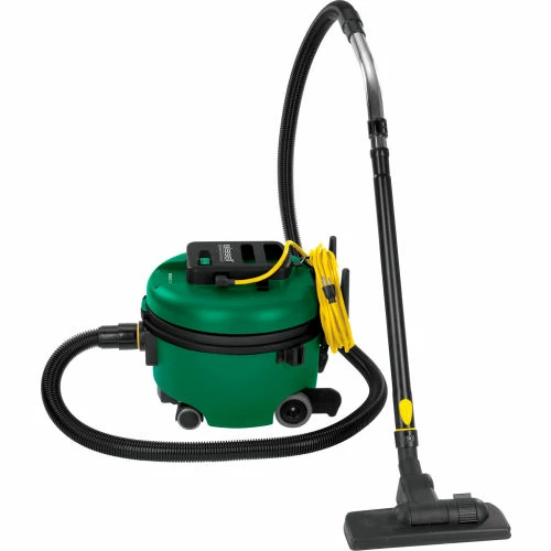 BissellĀ® BigGreen Commercial BGCOMP9H Canister Vacuums are versatile and lightweight for hassle-free usage in a variety of environments. BGCOMP9H Canister Vacuums are made with a long telescoping wand to extend cleaning reach. Variable suction control on wand allows vacuum to clean delicate materials. 6′ blow-molded hose for cleaning hard-to-reach areas. Combo floor tools allow adjustable brush height. BissellĀ® on-board cleaning tools include Crevice Tool, Upholstery Tool, Dusting Brush, Combination Floor Tool and Metal Telescoping Wand. Non-marring wheels won’t leave marks on floors. BissellĀ® vacuums feature a 2-speed motor. Replaceable pre-motor filter and post-motor filter. 3-stage clean air filtration system. Replaceable pre-motor filter and post-motor filter. Replaceable vacuum bag holds up to 7.37 liters. 46′ replaceable cord provides 92′ of cleaning reach. Vacuums come together with simple tool-free assembly. 1-Year Limited Warranty.