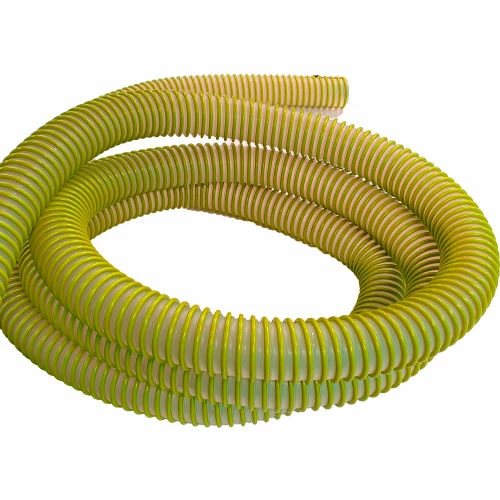 50 mm Hose, 10′, Yellow Helix conductive Food grade hose. Compliant with Class 2 Div. II. Specially formulated static dissipative clear polyurethane hose reinforced with a rigid ABS yellow helix and an embedded copper grounding wire. FDA acceptable materials, includes FH0044 Hose Cuffs