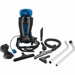 Simplify your cleanup process with the Global Industrial™ HEPA Backpack Vacuum. This vacuum is powerful, innovative, and quiet and its unique design allows for constant air flow even when the bag is filled. The exhaust is directed away from the operator while in use and is equipped with a built-in heat sensor. Weighing only 13 lbs., it features a detachable cord and crush-proof hose with dual swivel-cuffs that stretch from 3′ to 7′ feet. The on/off switch with power nozzle hook-up has a built-in fingertip control right on your hip, while its innovative switch box design makes changing cords easy. 1 Year Limited Warranty.