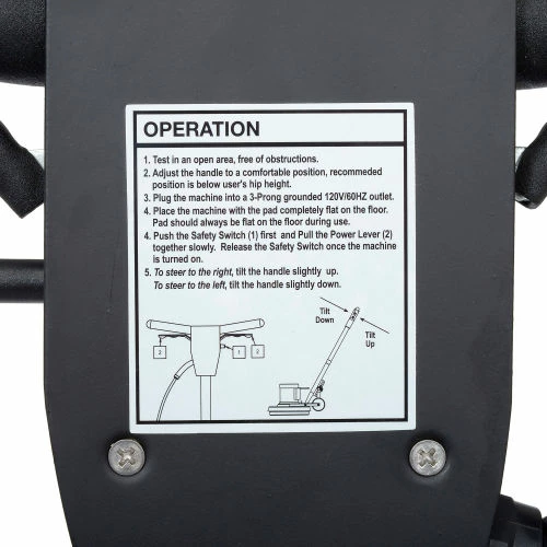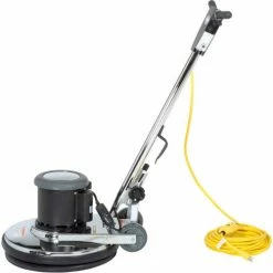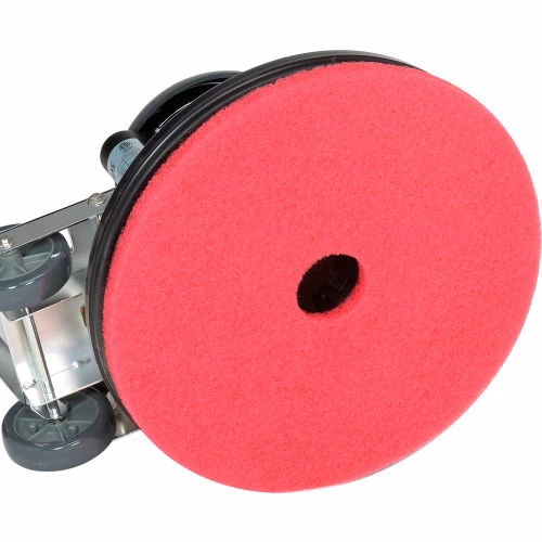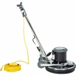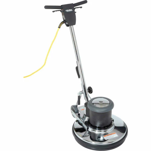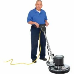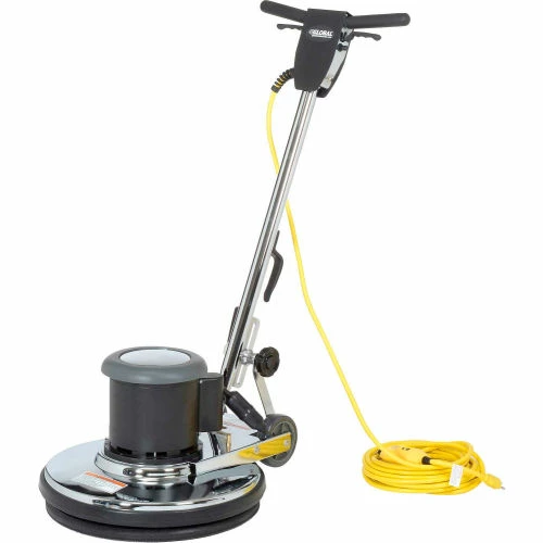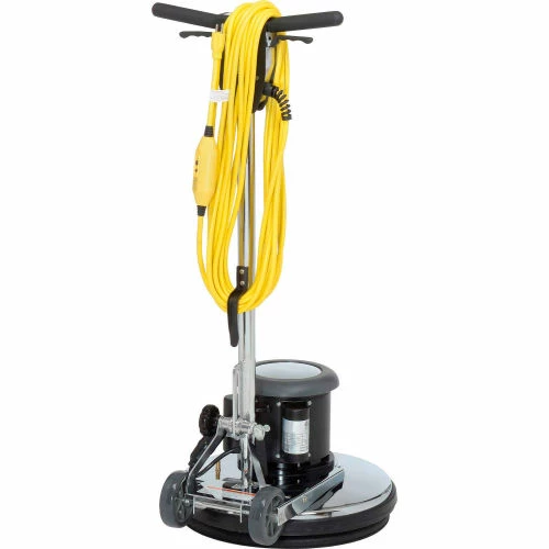 Got a commercial floor that needs good wet/dry floorcare treatment? Roll in the Global Industrialâ„¢ Low Speed Floor Machine. Floor machines offer a low speed for use on wet hard floors and tile floors. All-steel gear box transmission for long life and dependable service. Safety lock-out switch on handle with easy access thumb control. Floor buffer includes pad driver and 50’L safety power cord. Two rear mounted 5″ wheels for tilt and roll mobility when not in use. Steel/stainless steel construction. Accepts a variety of pads (sold separately) for scrubbing, stripping, polishing, and buffing. 110V Motor. Includes 50 ft. safety power cord with GFCI plug. ETL listed.