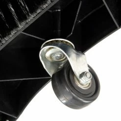 This push sweeper can pick up plastic and paper shred packing materials (not used for small dust particles). Durable polyethylene body with tubular steel fold up handle. 32″ cleaning path provides a work rating of 17,000 sq. ft. per hour for maximum productivity. Lightweight and easy to maneuver. 4-Brush system offers efficient debris containment. 9 gallon capacity hopper empties easy. Rear mounted wheels climb stairs. Height adjustment allows for efficient cleaning on various hard floor terrains. Dimensions when folded – 24″W x 34″D x 14″H. 1 Year Limited Warranty.