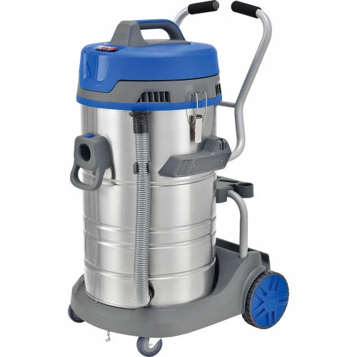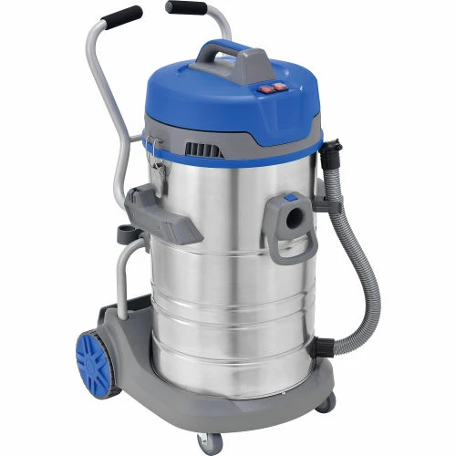Tackle floors with the Global Industrial™ Wet Dry Vacuums remove unwanted surface grime in commercial and industrial applications that require heavy-duty clean. Model includes a reusable filter bag and a cartridge filter to accept fine dust on most surfaces. On-board tool storage and 33’L power cord allow for efficient cleanup. Tool kit includes 1 crevice tool, 1 round brush, 1 hose, 2 extension wands, 1 dry floor nozzle, and 1 squeegee nozzle. Dolly design with large push handle and two large rear wheels/two front casters offer easy mobility from one worksite location to another. Strong and durable stainless-steel tanks provide lasting durability. 21-gallon tank capacity. ETL and cETL certified. 1-Year Limited warranty.