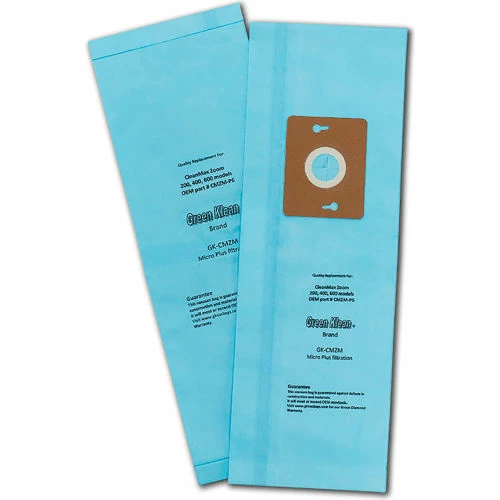 Green Klean Brand superior quality commercial vacuum cleaner bags are specifically designed for the Janitorial Professional vacuum cleaners and are backed by the Green Diamond Warranty. CleanMax Replacement vacuum cleaner bags (10/10 packs per case, 100 bags), designed by Green Klean® for exact fit and performance as the OEM, at a considerable savings. GK-CMZM, CMZM-P6.