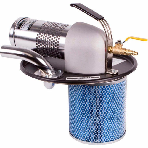Mount a Guardair Vacuum Generating Head on any Guardair 5 or 10 gallon canister for instant, high-performance vacuum capability. Ideal for vacuuming up chips, dust, debris, liquids or sludge. Powered by compressed air, always dependable and trouble free with no motors or moving parts to wear out, Guardair Vacuum Generating Heads produce exceptional vacuum lift and vacuum flow while operating quietly and efficiently. Medium vacuum lift (M venture) version available. Factory installed options include: HEPA Filtration and Extra Silent Exhaust.