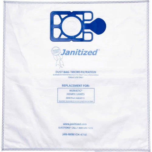 Janitized® vacuum bags and/or filters are designed to meet or exceed OEM standards. N.A.C.E. Replacement Paper Vacuum Bag are made of 4 Ply High Efficiency Micro Filtration. For use with N.A.C.E & Numatic Henry/James Vac bag for models 200, 225, 235, 250, 252 & 260. Sold in quantities of 100. 1 Year Limited Warranty.
