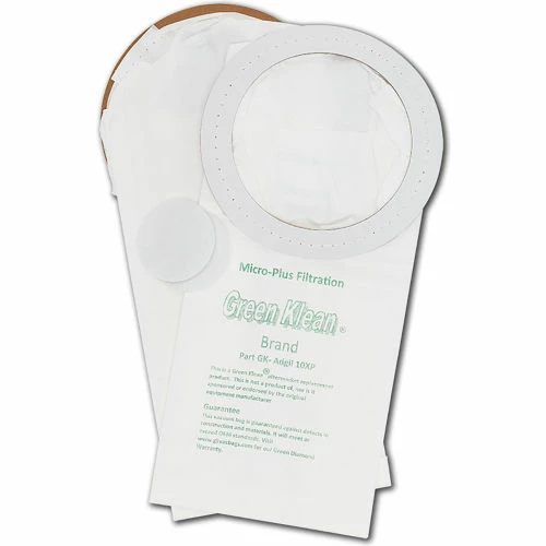 Green Klean® Replacement vacuum bags use the highest quality Micro-Plus filter media including Melt-Blown inner liner in order to achieve filtration efficiencies up to 99.9%. Designed specifically for commercial use, they are always equal to, or exceed OEM quality. Better filtration means cleaner air, less dusting, longer secondary filter life, at considerable savings. Each bag is printed to easily identify the vacuum it fits. Sold in quantities of 100 (10/10 packs).