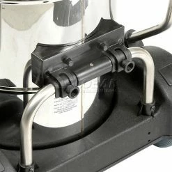 Two stage filtration process with washable cloth filter. 18 gauge stainless steel for long life and durable polyethylene dolly with push handle for easy portability. Features an easy “Tip and Pour” waste water disposal. Includes swivel hose connector that allows 360 degree hose rotation. Sound insulated vacuum head. Set of tools include 14″ rug, crevice, dust and squeegee. 30’L power cord.