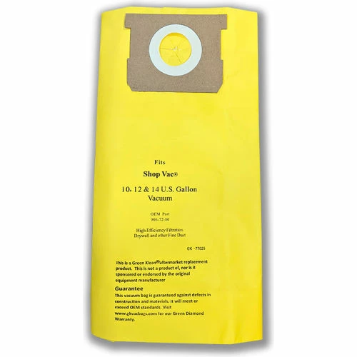 Constructed of a paper filter media for efficiency and long lasting durability. Replacement vacuum bags use the highest quality Micro-Plus filter media including Melt-Blown inner liner in order to achieve filtration efficiencies up to 99%. Equal to or exceed OEM quality. Bags printed to easily identify correct fitting vacuum. Guaranteed fit and performance. Price per package. Package quantity is 10.